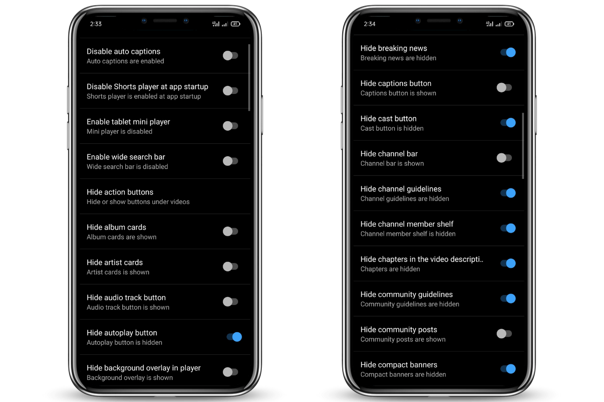 As mentioned above, all ads are already hidden in the YouTube ReVanced app. However, you can manually select which ads to show and which ads to hide. Here are different ad types you can manually disable according to your needs.