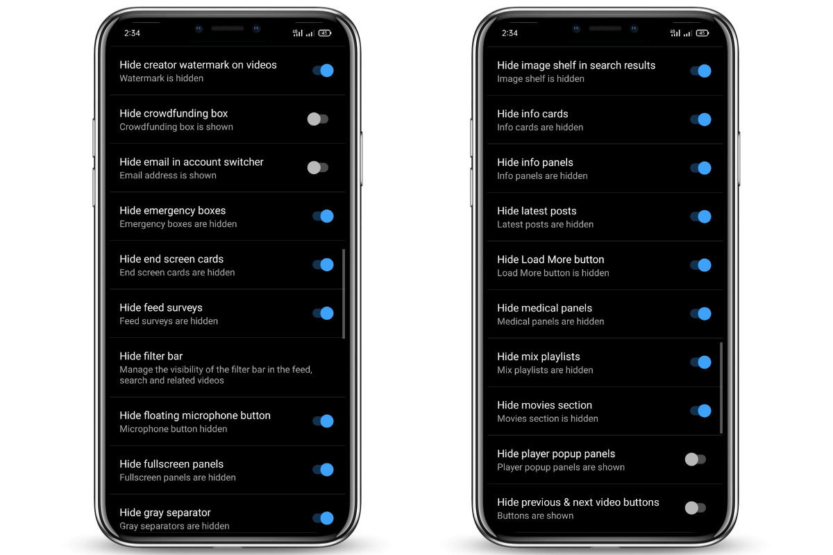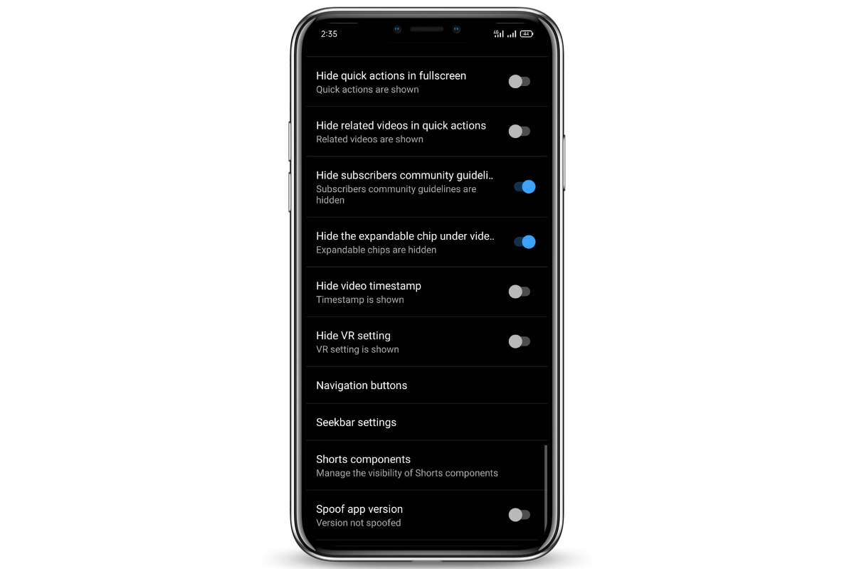 As mentioned above, YouTube ReVanced gives you options to hide several things across the apps. You can find the list of all the things you can hide below. All those things that can be disabled or hidden can be found in the following settings page inside the YouTube ReVanced app.